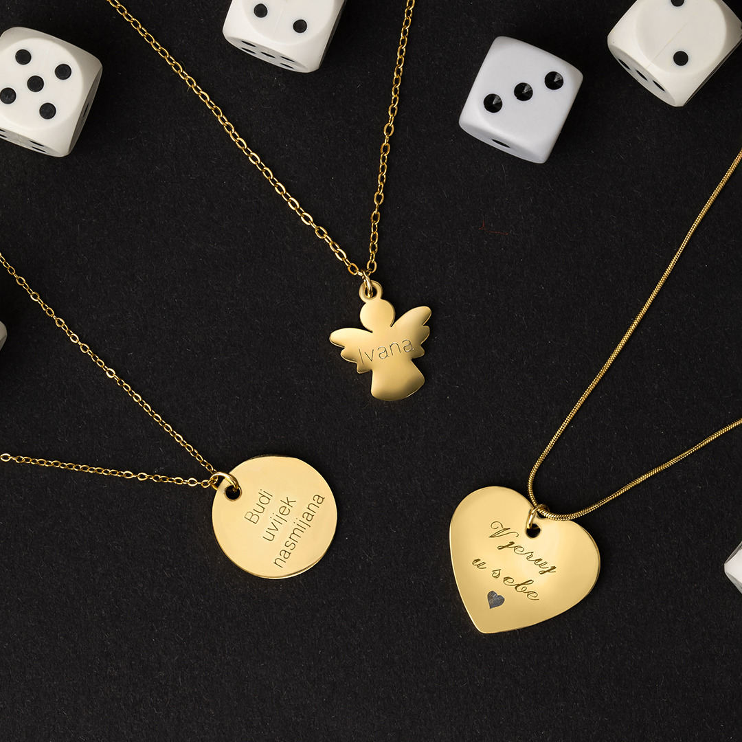 Length pendant: -angel 1.8 x 2 cm -circle 2 cm -heart 2,5 x 2,3 cm